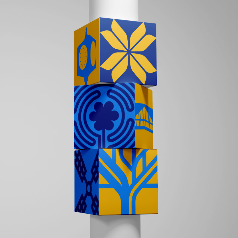 - A comprehensive wayfinding system and iconic physical installation to improve campus navigation and reinforce the new identity